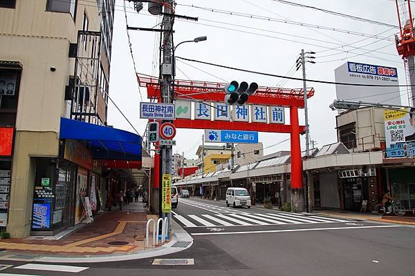 從地下鐵長田車站出來後, 就會看到馬路上有一座巨大的鳥居, 絕對不會走錯路