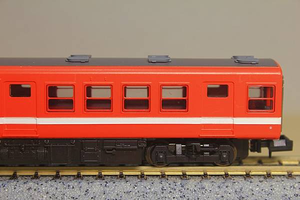 拉近看側面, 可以看到車窗是上下兩段窗, 此外由於列車沒有冷氣, 車頂上有通風器