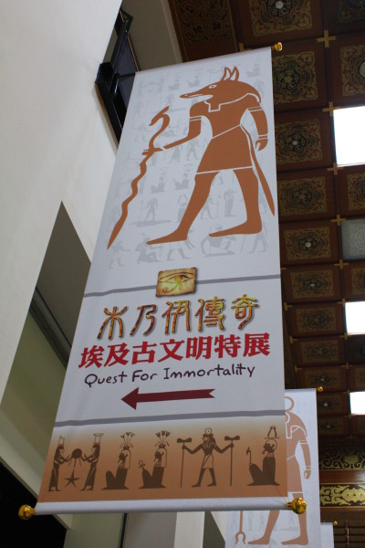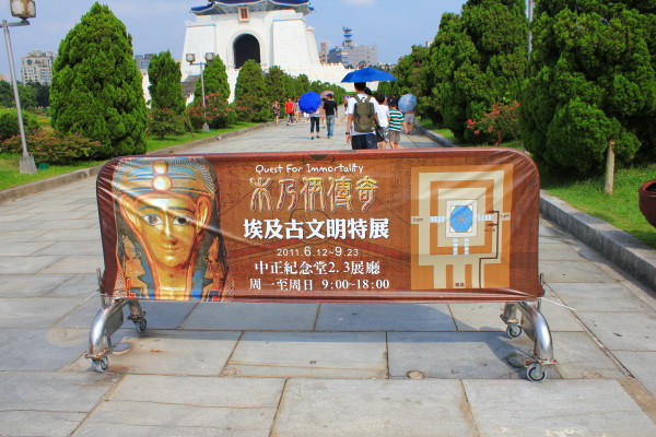 阿努比斯 很久沒看展覽了, 偶爾也要冒充一下文藝青年(?) 適逢大英博物館展出的木乃伊漂洋過海來到台灣 就來體驗一下數千年前的埃及古文明吧 很久沒來這裡了(上次跑進來應該是大學的時候....?) 話說"梅花"颱風遠遠經過, 看來沒對天氣造成什麼影響, 一整個大太陽.... 很久沒來這邊.... 展覽由此去 售票亭做成金字塔的樣子 弄得像金字塔的售票亭 一邊排隊, 一邊看著儀隊經過身旁 恰巧儀隊經過.... 買到票了, 不過接下來的排隊入場是相當漫長的 顯見台灣的文藝青年(?)真的相當多 一張票250 排了很久, 終於要抵達入口了 排隊參觀的人無敵多....終於快要到入口了 由於接下來是禁止攝影, 所以就稍微提一下內容 展出的除了一定會有的各種當時陪葬用的一些器具, 飾物等等之外 最有看頭的就是那四具木乃伊了 - 包括展覽的主角, 拉美西斯二世之子 身上大部分都沒有包裹著亞麻布, 讓人一覽無遺 (美中不足的是, 人真的超級多....然後管理人員會一直要大家先去別的地方參觀) 放映室那歷史頻道的影片, 記錄著當時拉美西斯二世之子出土後是如何分析與模擬重建 而最後還有一間"復刻版"圖特摩斯三世法老墓室, 四周畫著法老死後第一到第十二小時的"行程"(?) (不過雖然有解說牌, 但那些圖案跟象形文字實在很難理解就是....XD) 展覽終於全部看完, 時間拉回現代 看來大家都爭著跟他合照 在這個該戴墨鏡的日子, 沒地方去嗎? 也許回到數千年前的埃及, 是個還不錯的選擇