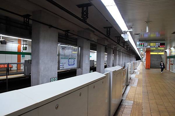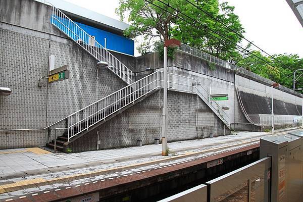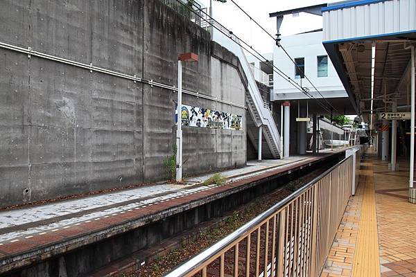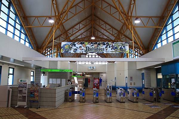 月台層的高度是在地塹裡, 改札口則是在地面層, 這裡可以看到日職歐力士猛牛的布條