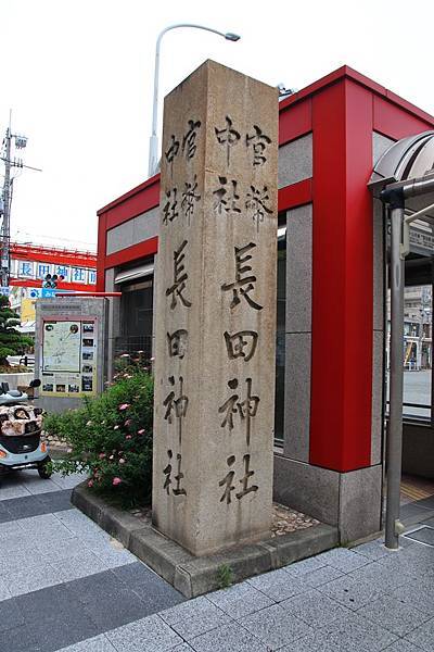 從西出口2上來地面後, 就可以看到長田神社的社號標, 上頭寫著"官幣中社"